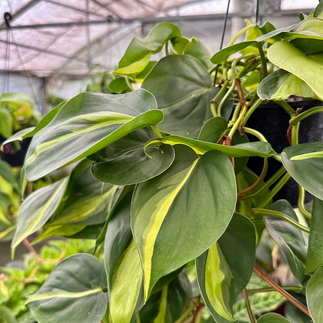 This heart-shaped philodendron is a beautiful evergreen climber with swirls of lime green and yellow through the leaves. This plant can grow upwards using a totem pole or downwards in a hanging basket.